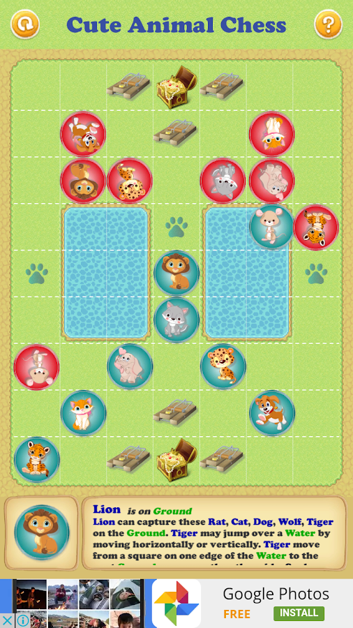 Jungle or Dou Shou Qi (Chinese: 鬥獸棋; pinyin: dòushòuqí; literally: "fighting animal game") is a traditional Chinese board game played on a 7×9 board. The game is also known as The Jungle Game, Jungle Chess, or Animals Chess, and is sometimes called Oriental Chess or Children's Chess.